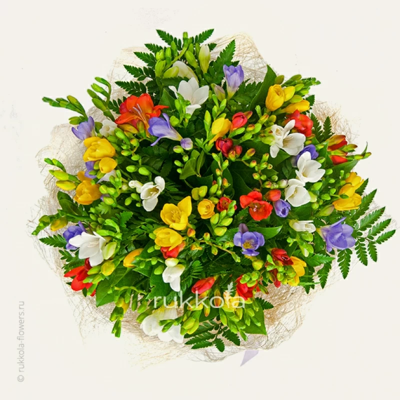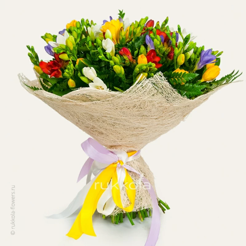 - 51 свежая фрезия разного цвета;