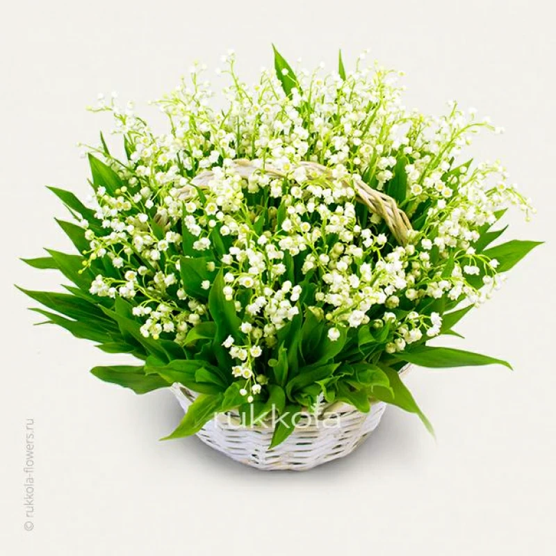 101 ландыш в корзинке в любое время года. Отборные цветы с бесплатной доставкой в Москве. К цветам добавим конверт с запиской для получателя.