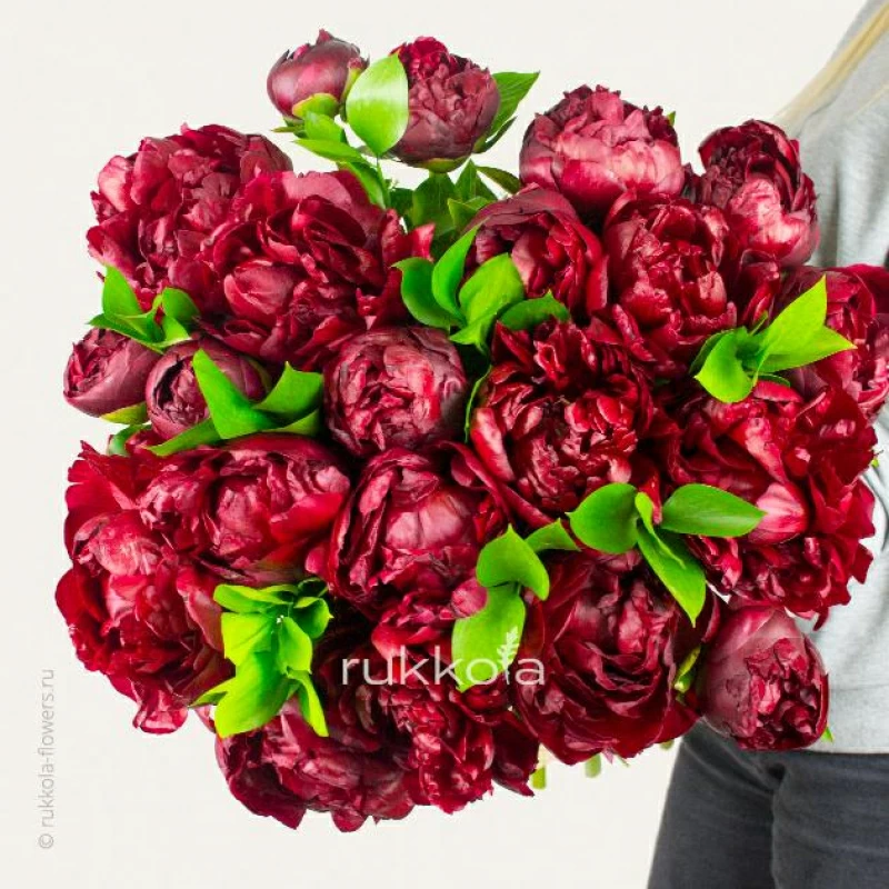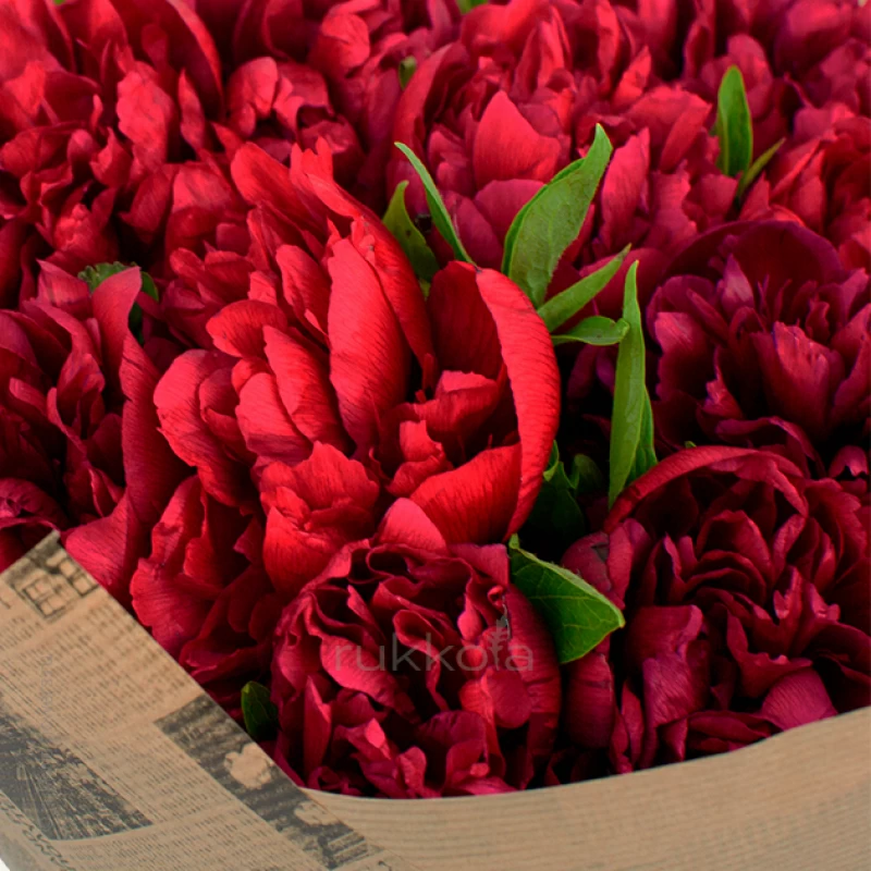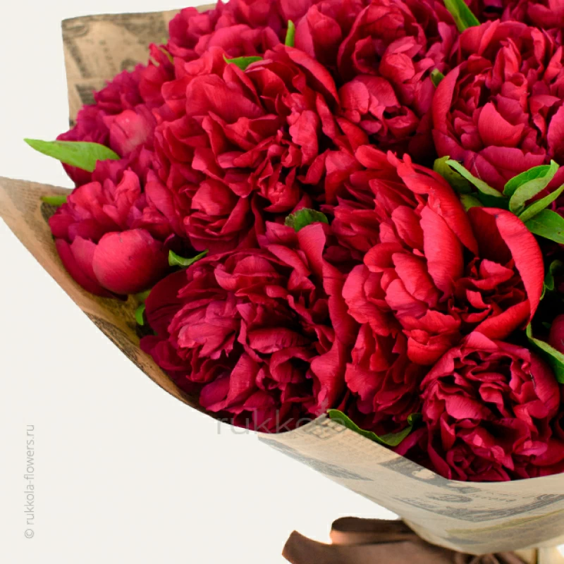 Букет свежих красных пионов. 21 отборный пион красного цвета с бесплатной доставкой в Москве. Цветы напрямую от флористов.
