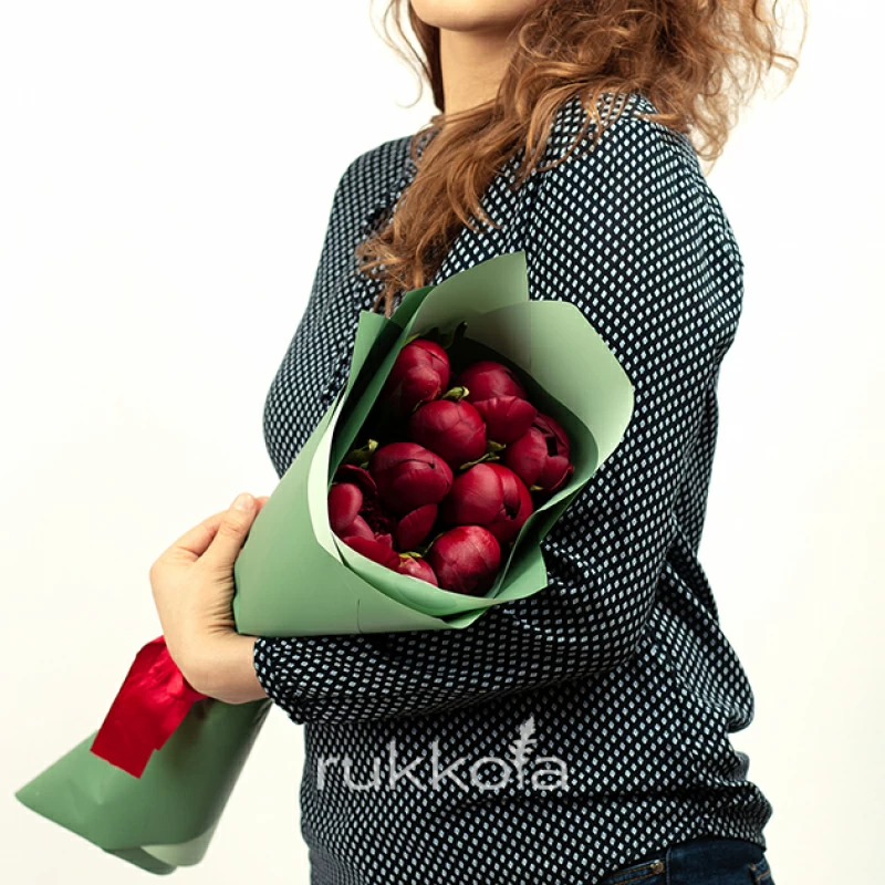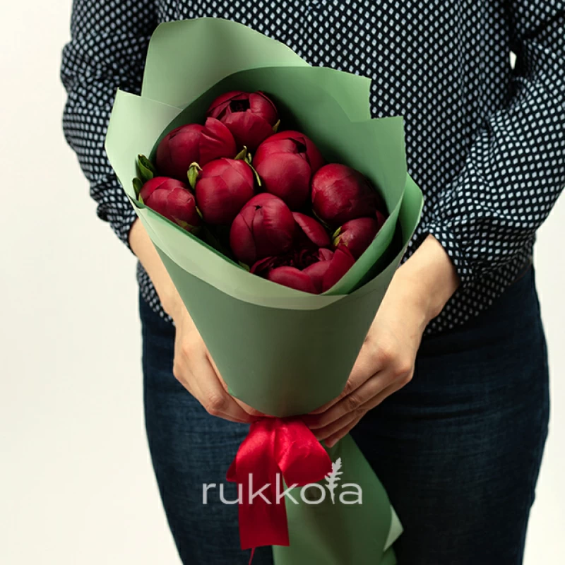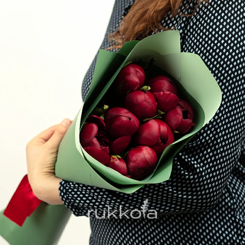 - 9 бордовых пионов;