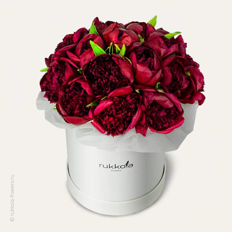 Насыщенные красные пионы в белой коробке