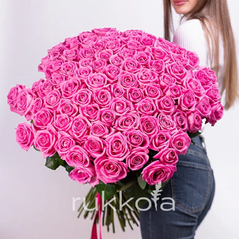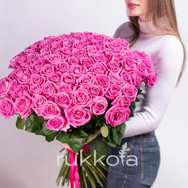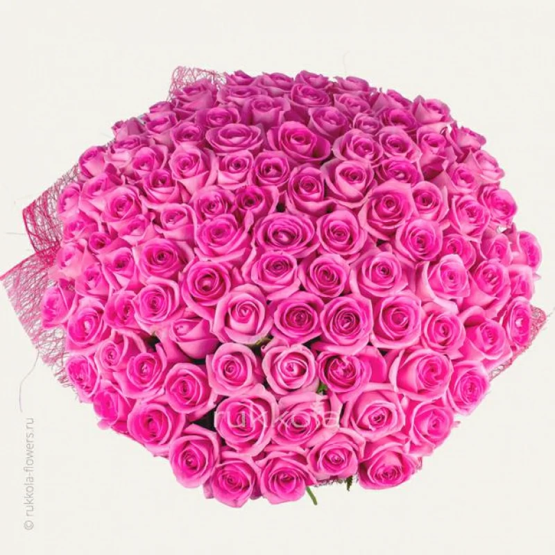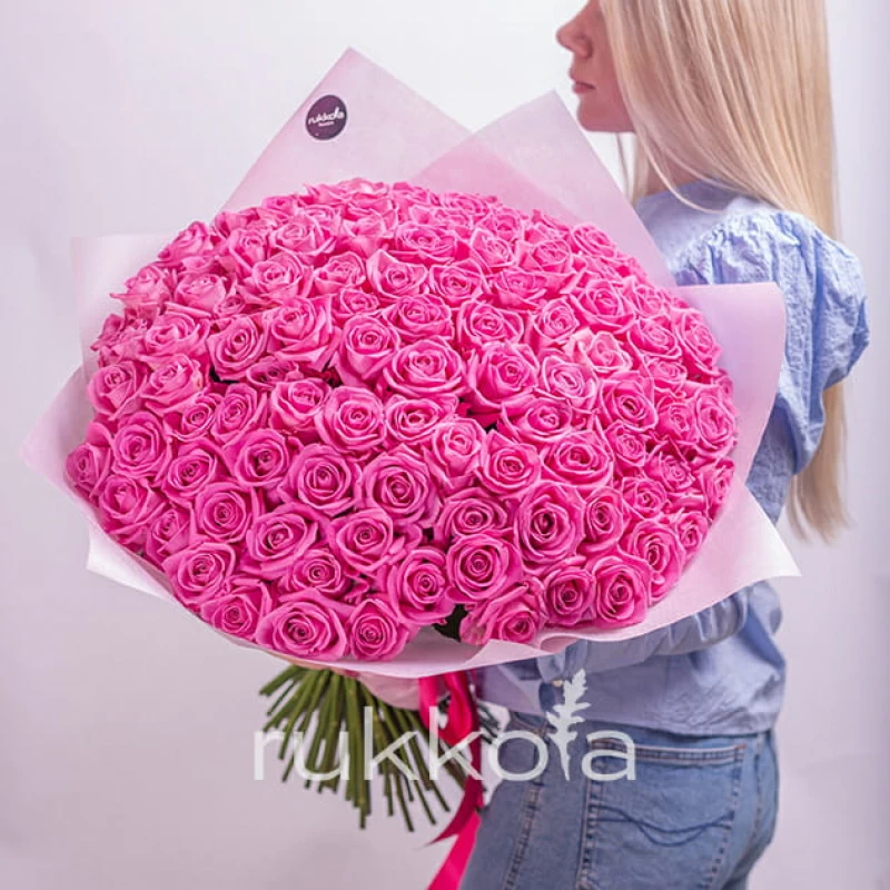 Если вы решили купить букет из 101 розовой розы, то советуем использовать красивую упаковку. Фото букета из 101 розовых роз вы можете увидеть в описании. Купить 101 розовую розу можно в доставке цветов «Руккола» недорого. У нас свежие и качественные цветы от московских флористов.