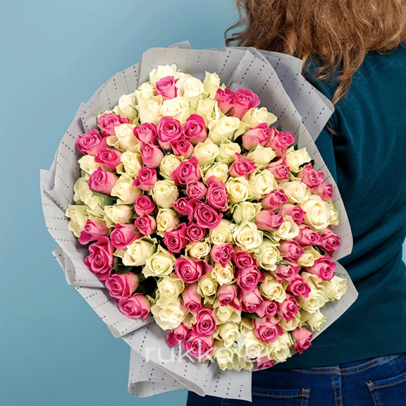 - 101 кенийская роза розового и белого цвета;