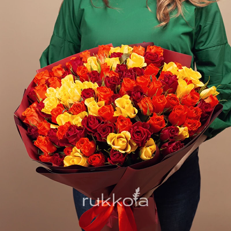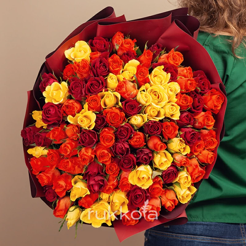 - 101 кенийская роза красного, оранжевого и желтого цвета;