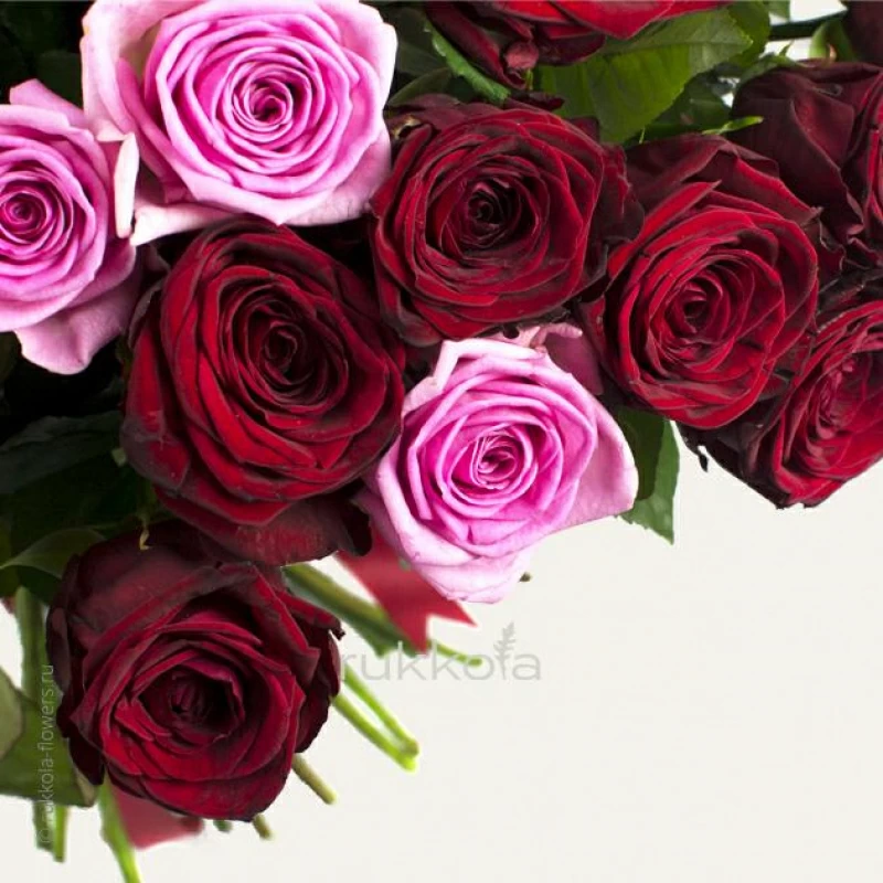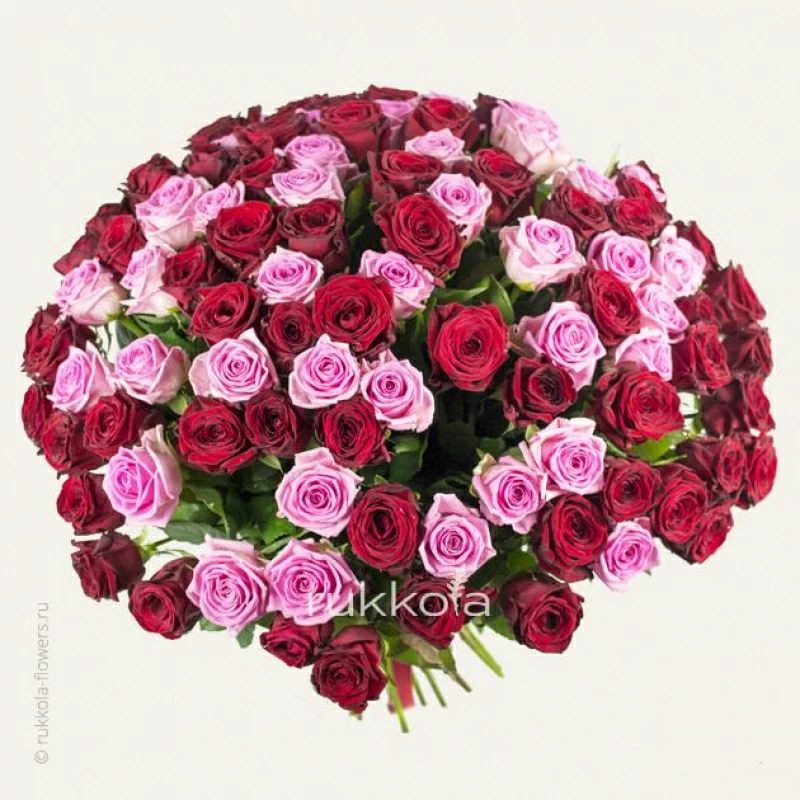 Букет свежих красных и розовых роз. 101 отборная роза с доставкой. Флористы соберут букет из свежих роз красного и розового цвета с упаковкой или без, можем сделать в корзине. К цветам добавим конверт с запиской для получателя.