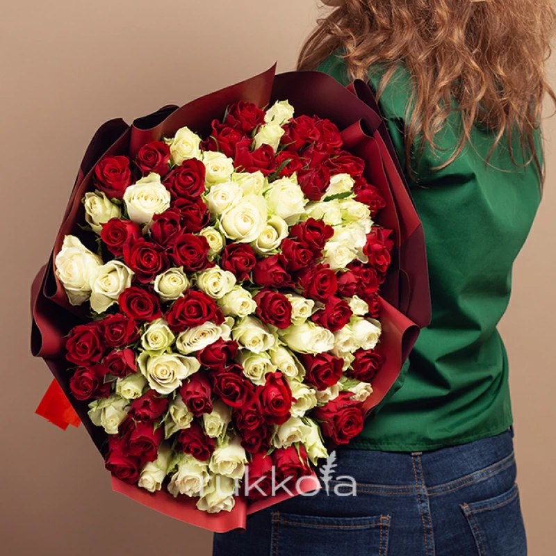 - 101 кенийская роза красного и белого цвета;