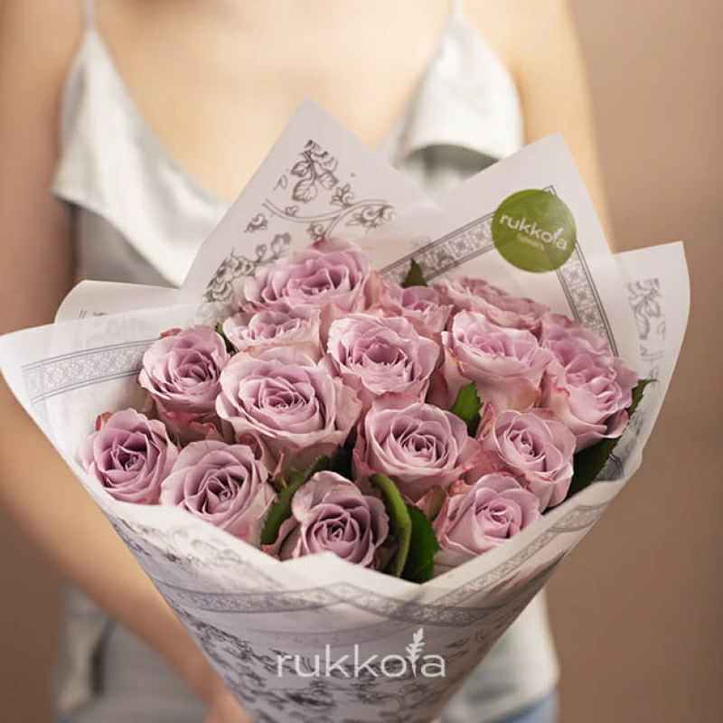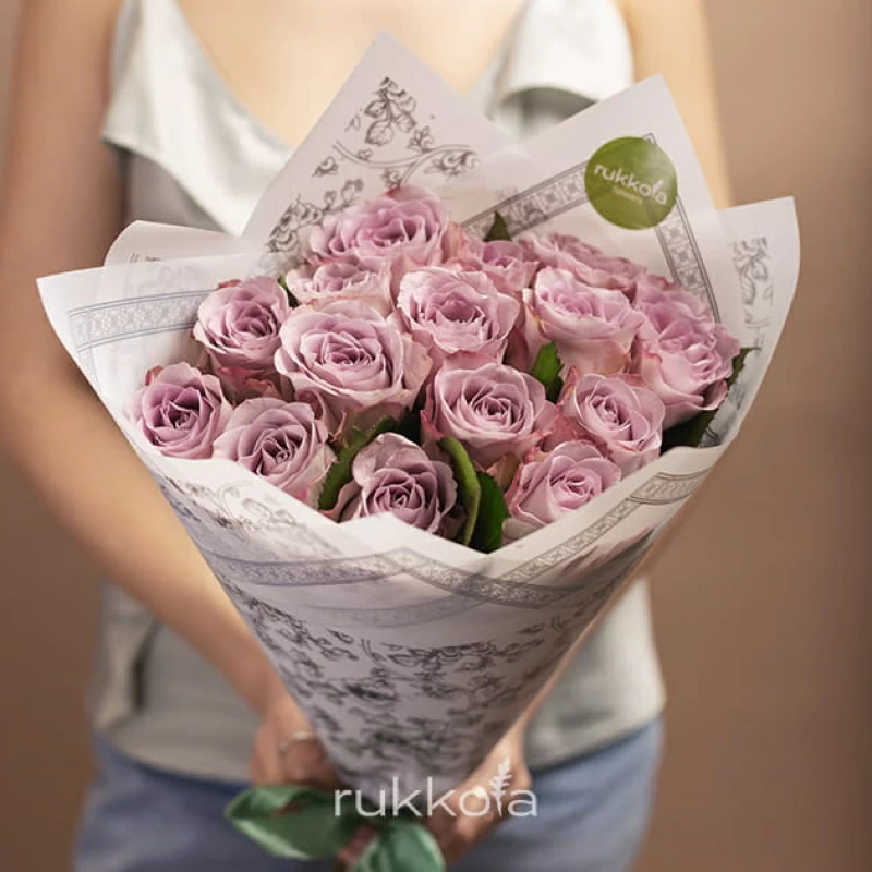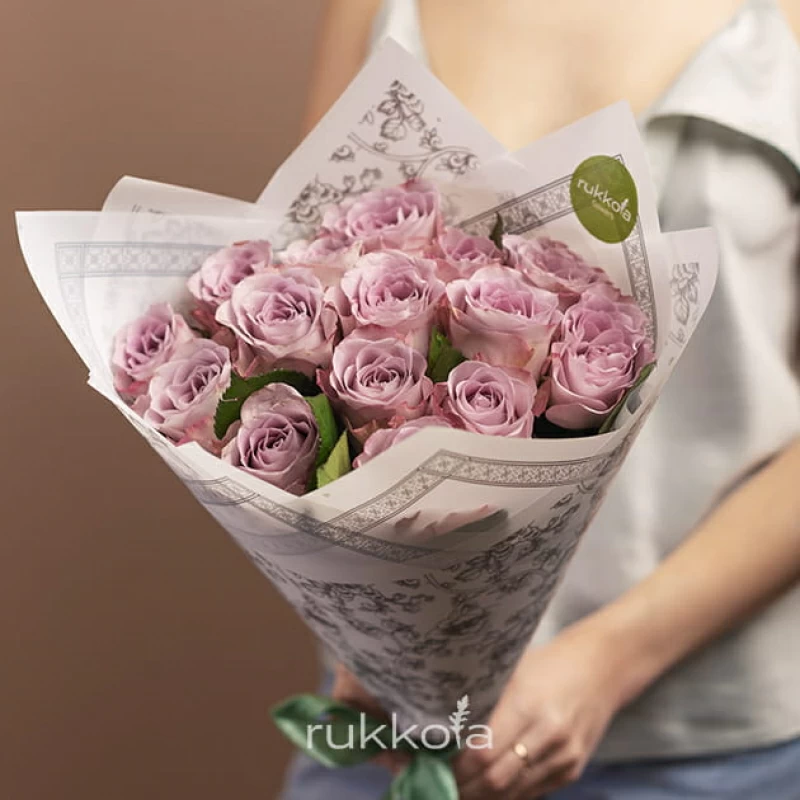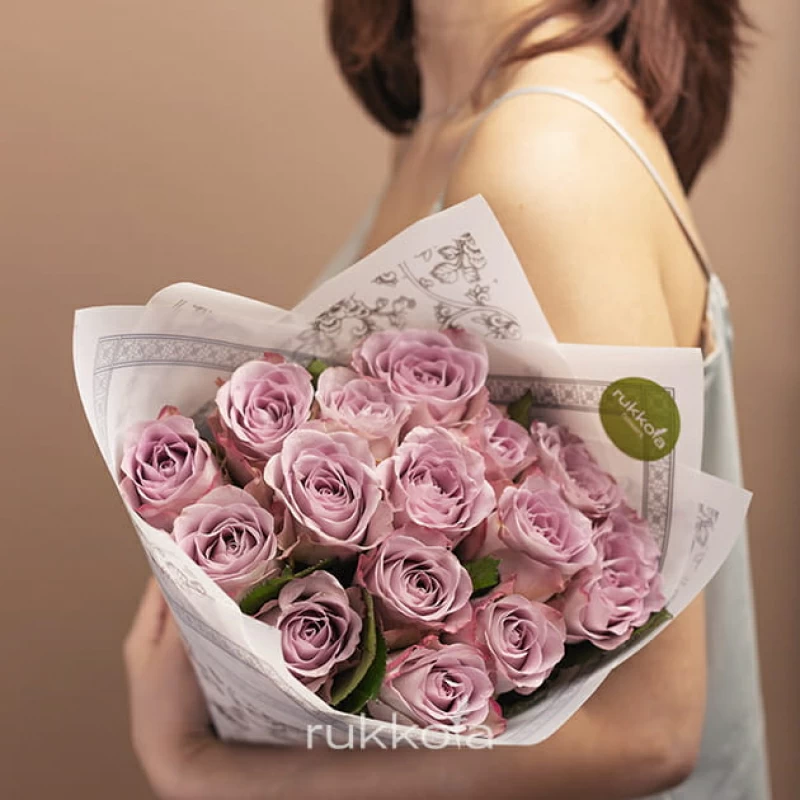 - 15 лиловых роз, выбранной высоты;