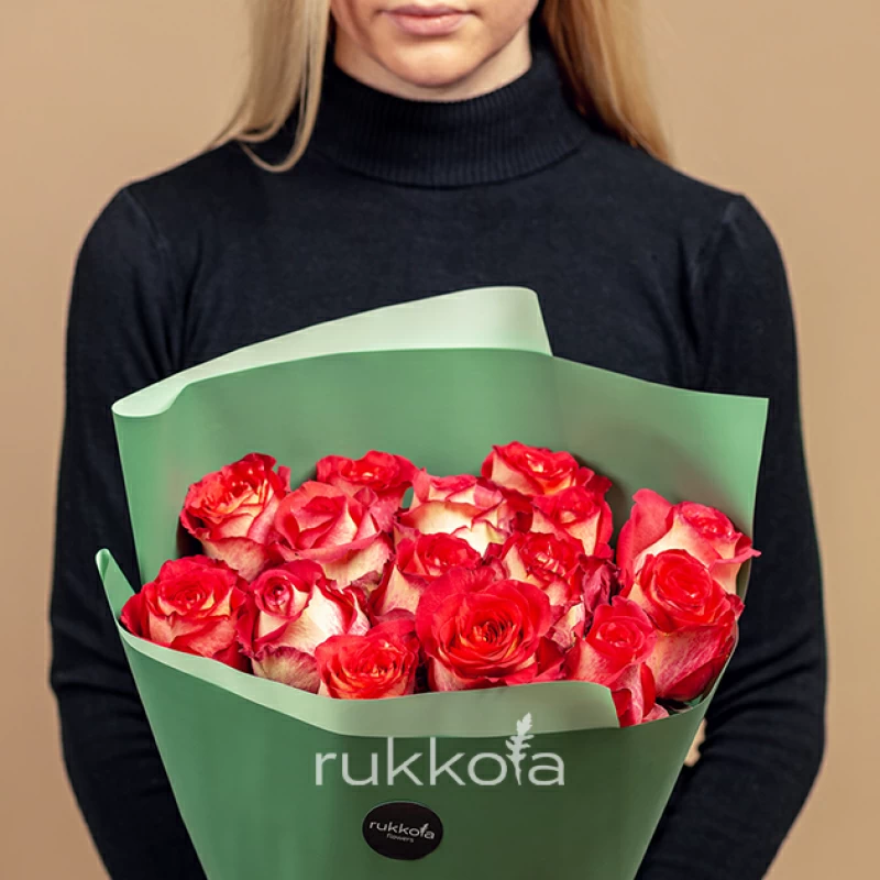 - 15 красно-белых роз Игуана (Эквадор);