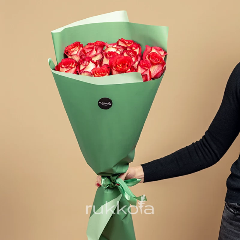 Отличный яркий букет из красных роз сорта Игуана, которые отличаются своим великолепны ароматом.