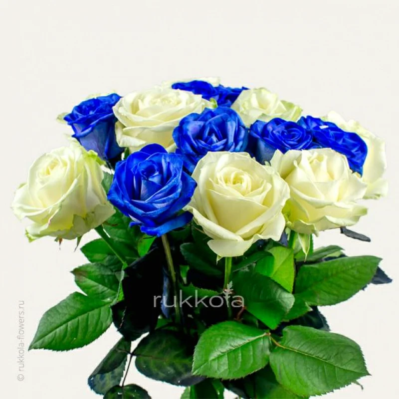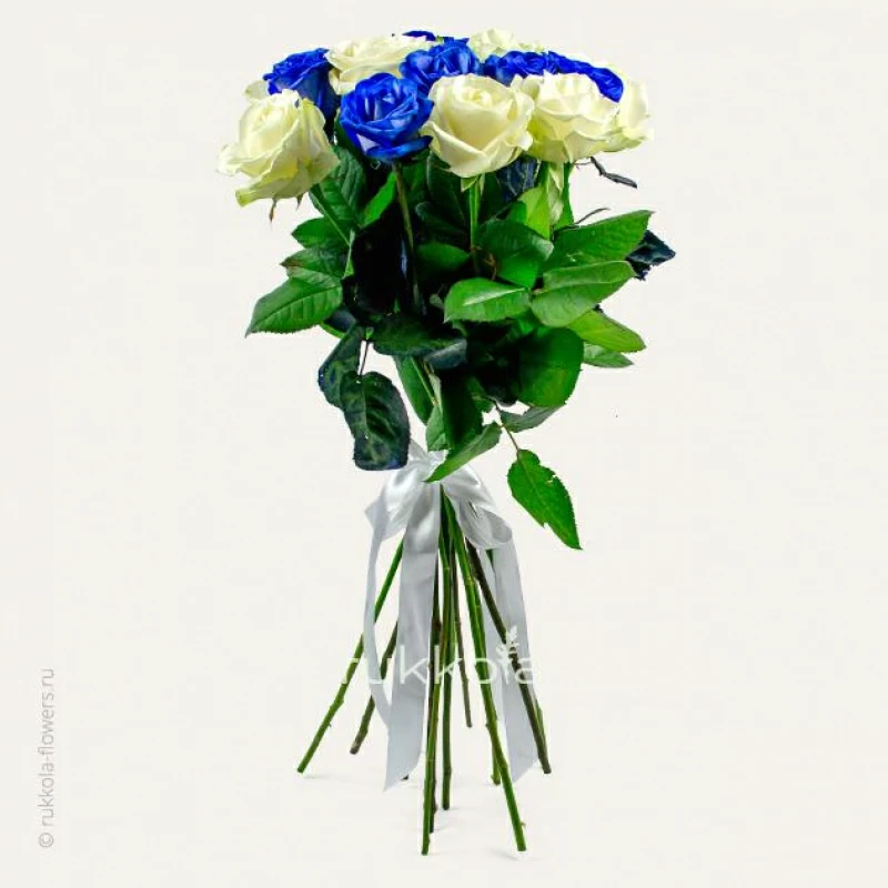 - 15 отборных синих и белых роз, выбранной высоты;