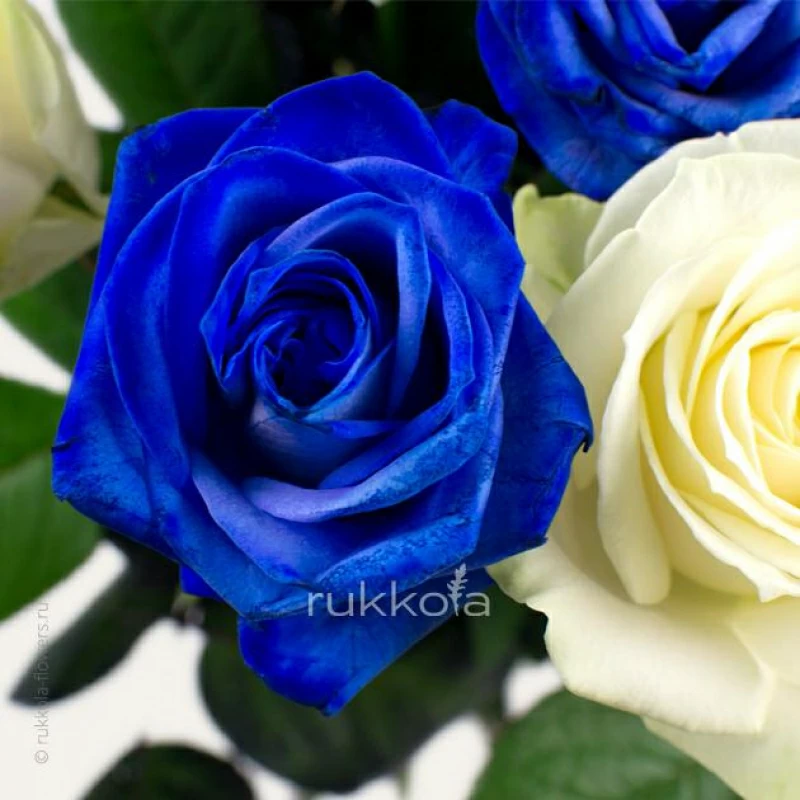 Бесплатная доставка в Москве букета синих и белых роз. Свежие цветы от флористов "Руккола".