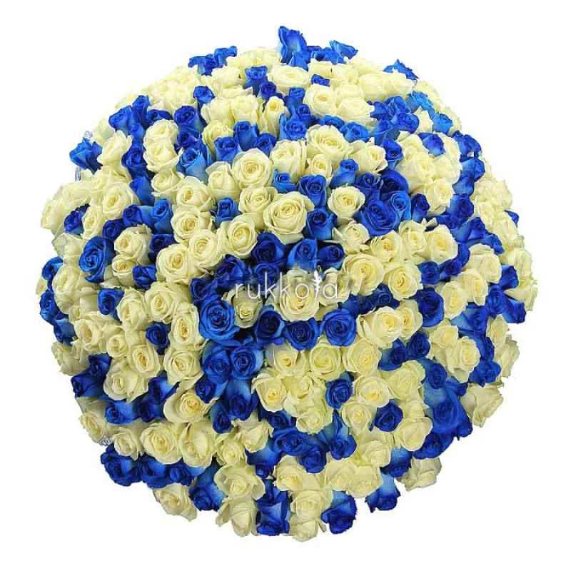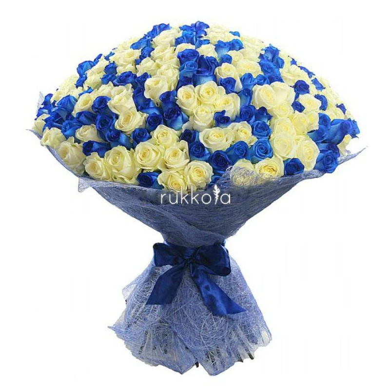 Букет синих и белых роз. 201 отборная роза с бесплатной доставкой в Москве. К цветам добавим конверт с запиской для получателя.