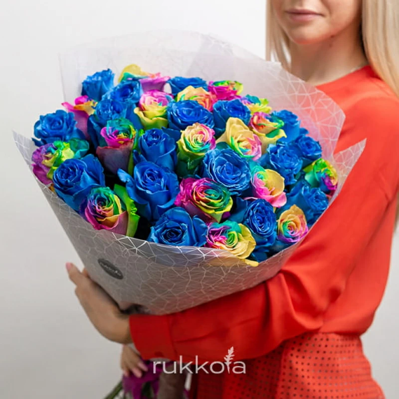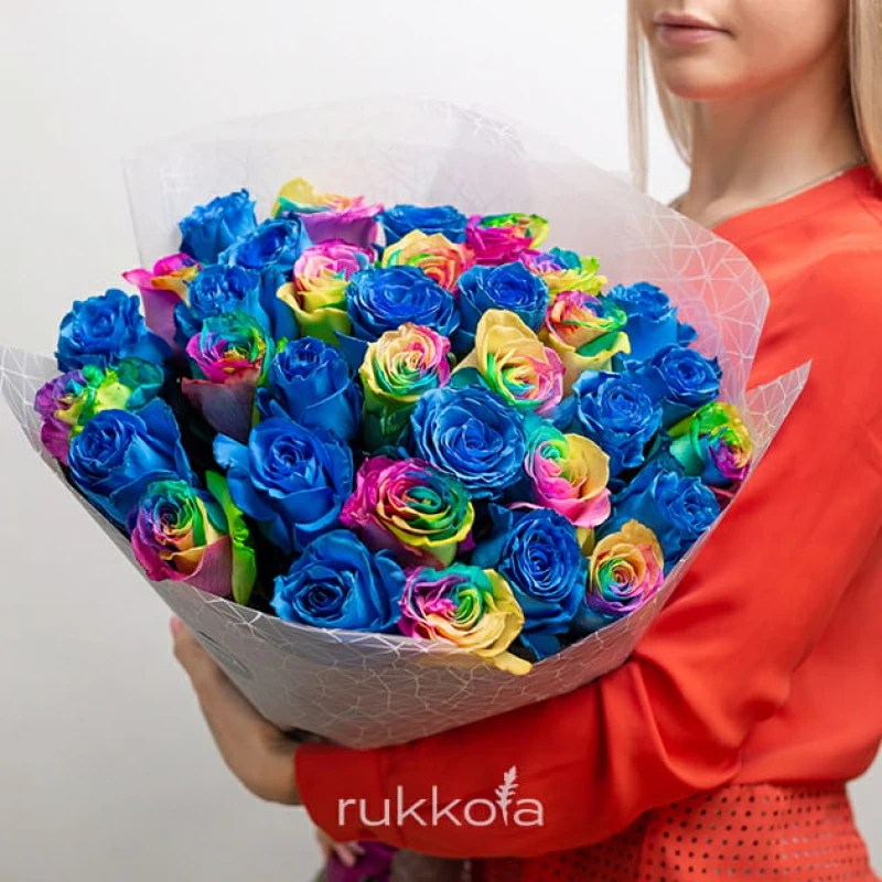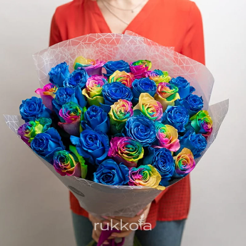- 35 синих и радужных роз;