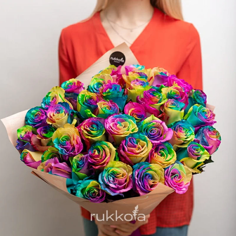 - 45 отборных радужных роз;