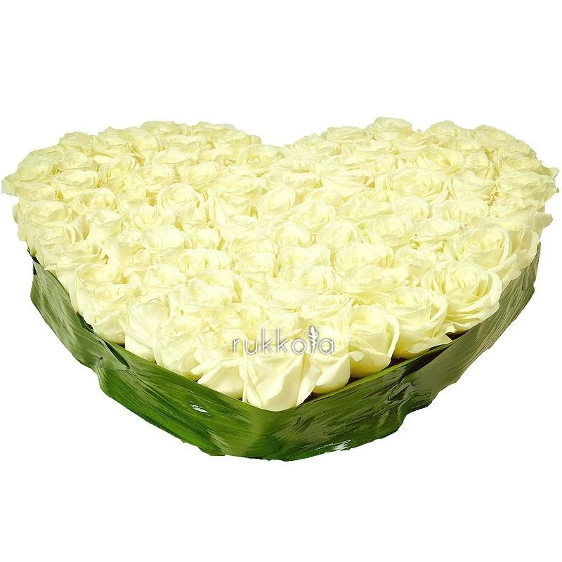 Розы в виде сердца. Композиция из белых роз в форме сердца с бесплатной доставкой в Москве. К цветам добавим конверт с запиской для получателя.