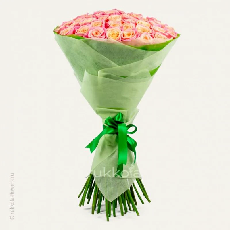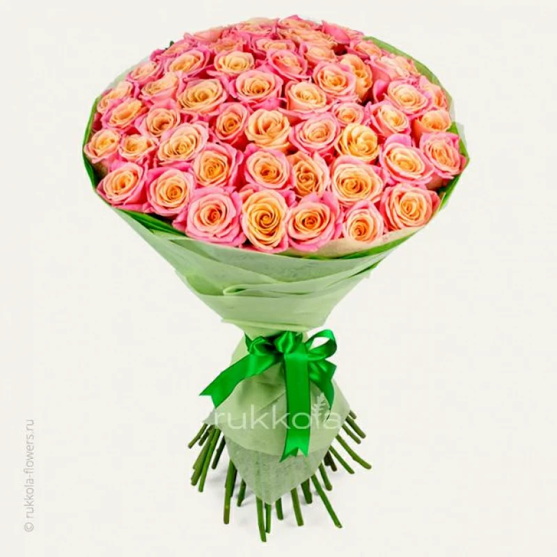 Если вы все таки решили купить букет из 51 розы персикового цвета, то советуем использовать натуральную упаковку. Зелень, на наш взгляд, в этот букет добавлять не стоит.