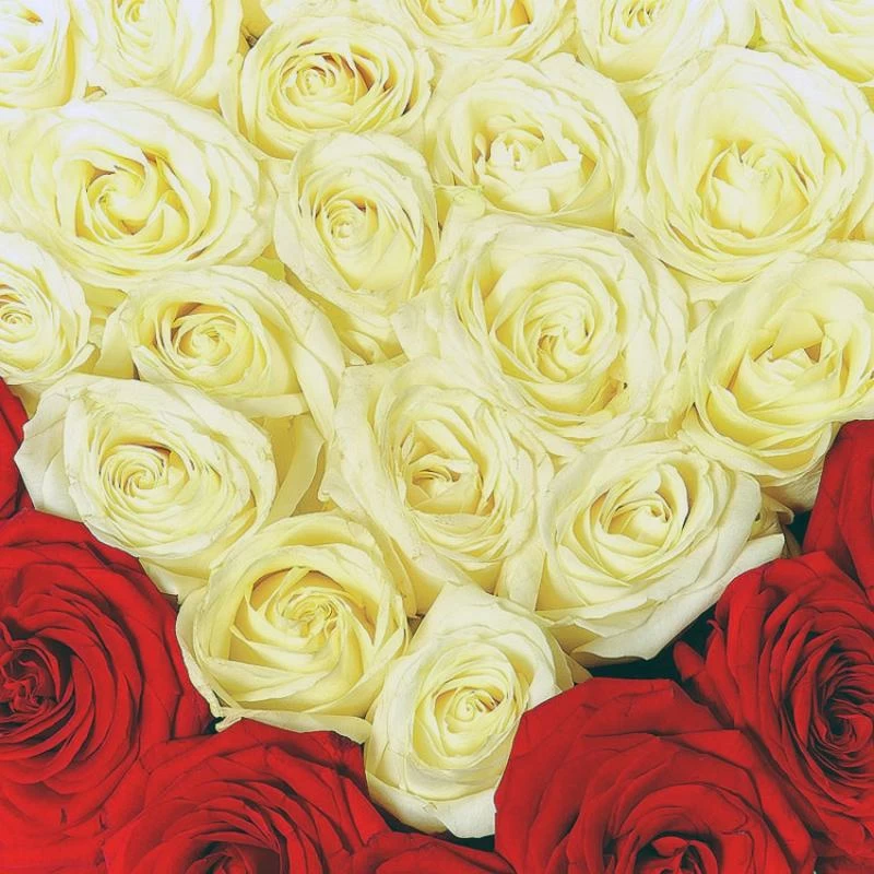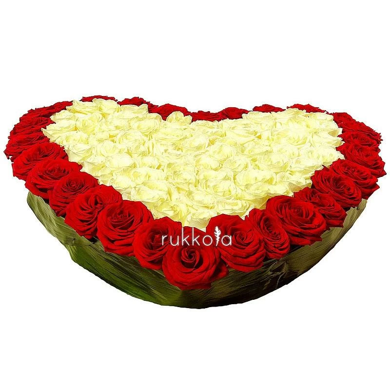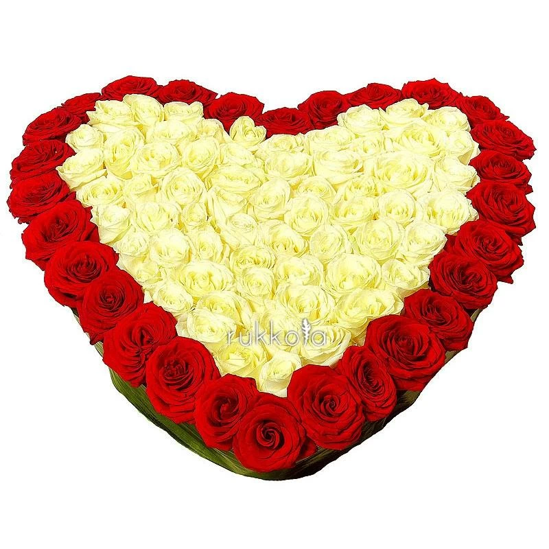 Сердце из белых и красных роз