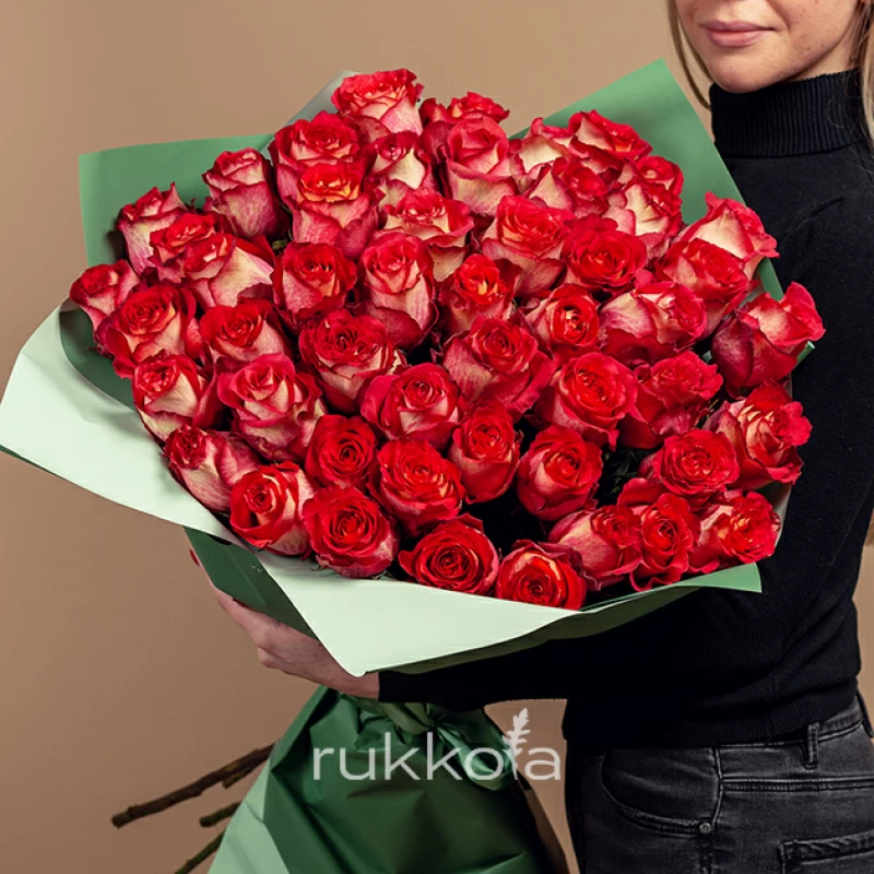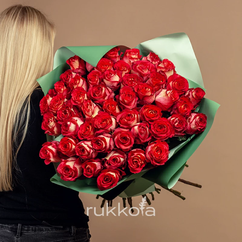 - 55 красно-белых роз Игуана (Эквадор);