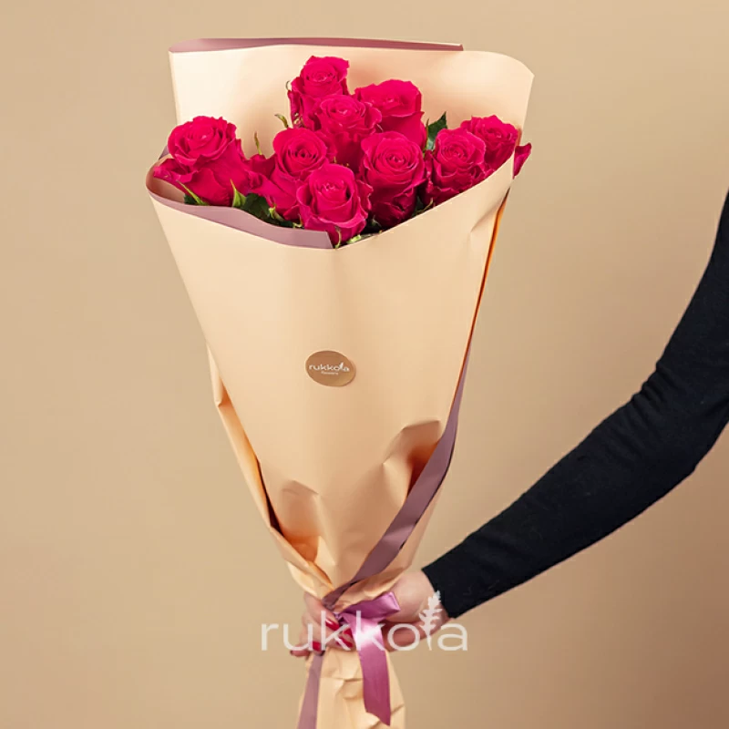 - 9 малиновых роз Пинк Флоид (Эквадор);