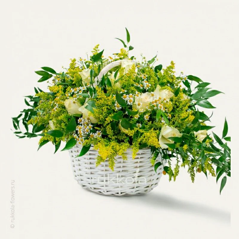 Купить корзину с розами и ромашками