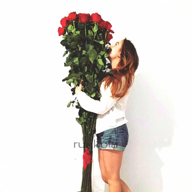 Высокие розы в любом количестве. Высота этих роз 170 сантиметров! Купить букет с бесплатной доставкой в Москве можно в "Руккола". Соберут букет профессиональные флористы, а привезет аккуратный курьер.