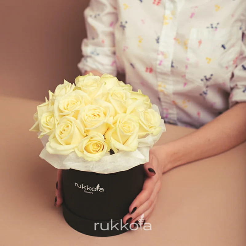 - 15 отборных белых роз в коробке