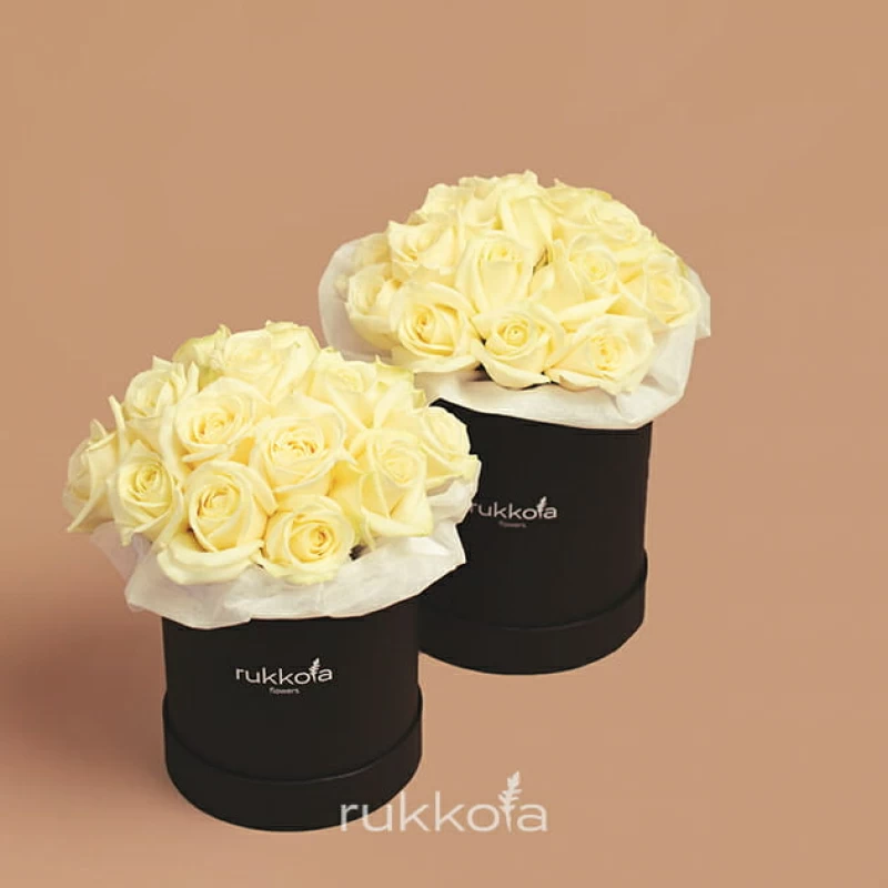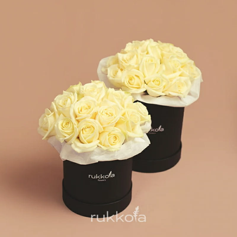 - 15 и 19 отборных белых роз в маленькой и средней коробке
