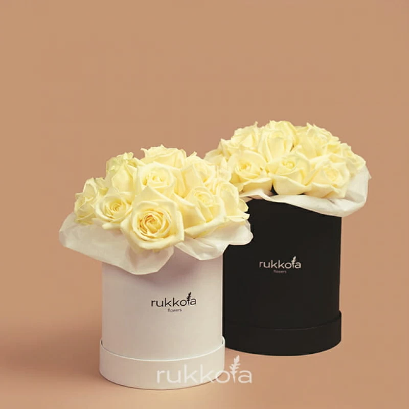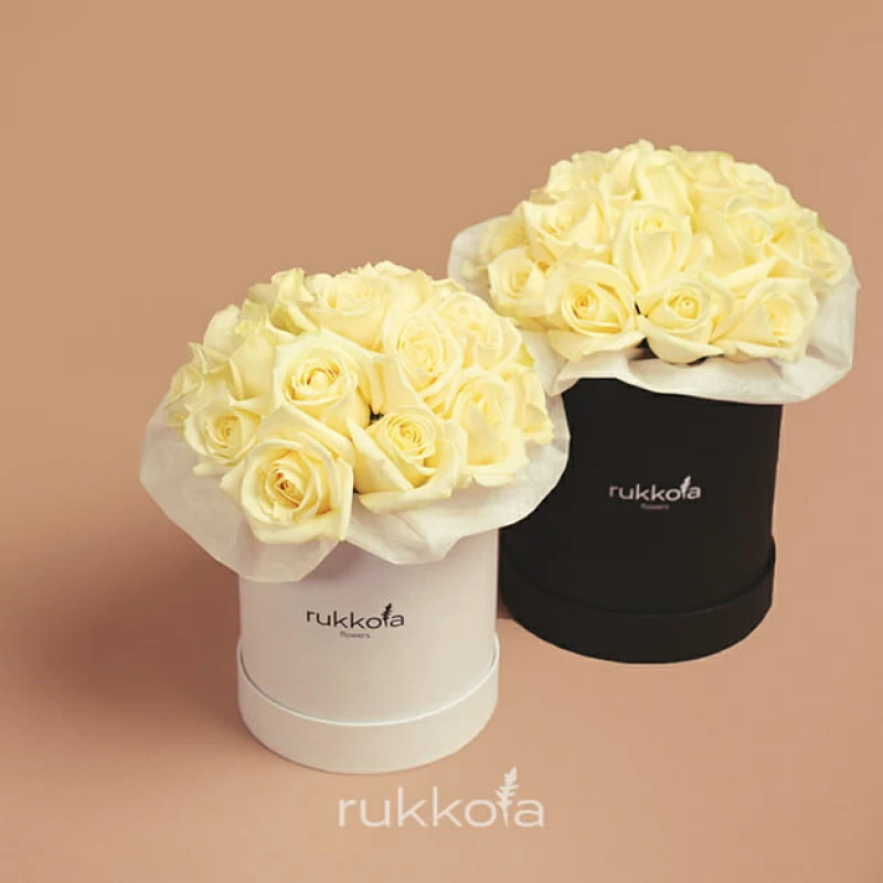 - 15 и 19 отборных белых роз в маленькой и средней коробке