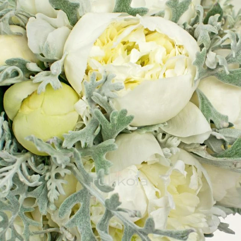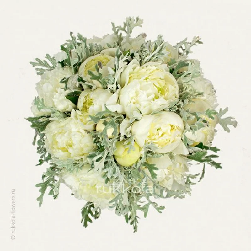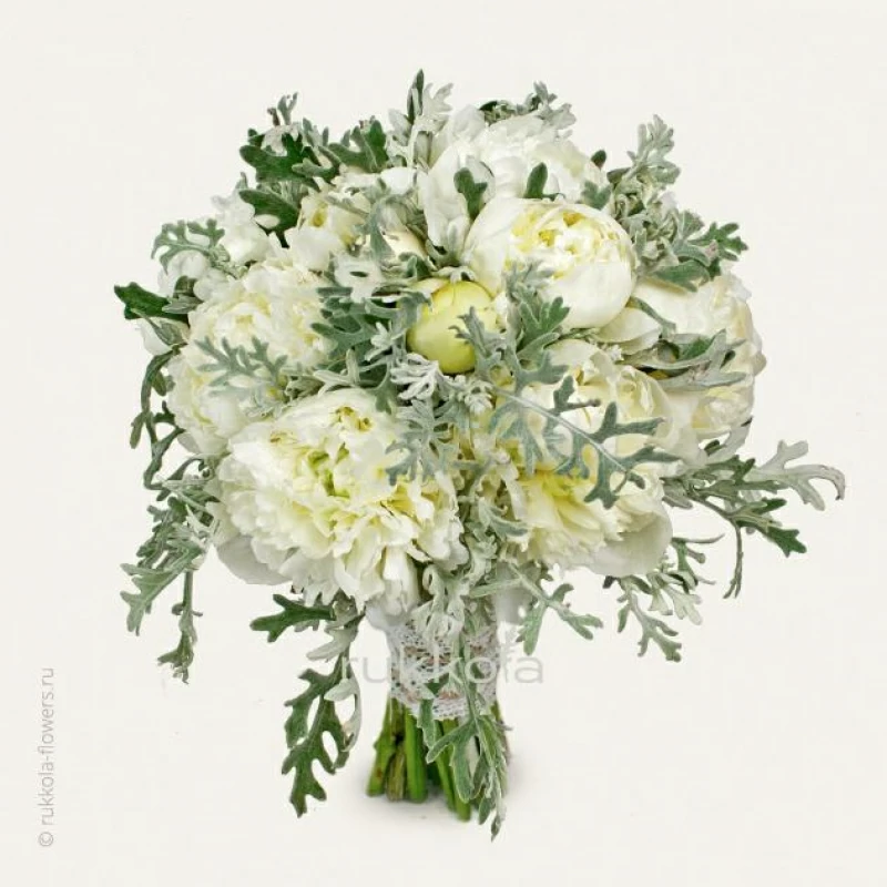 Свадебный букет белых пионов. Бесплатная доставка курьером в Москве и личный подход флористов к сборке.