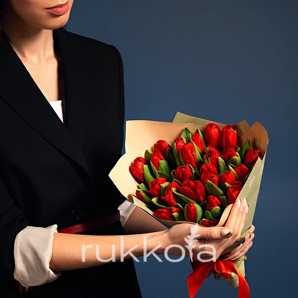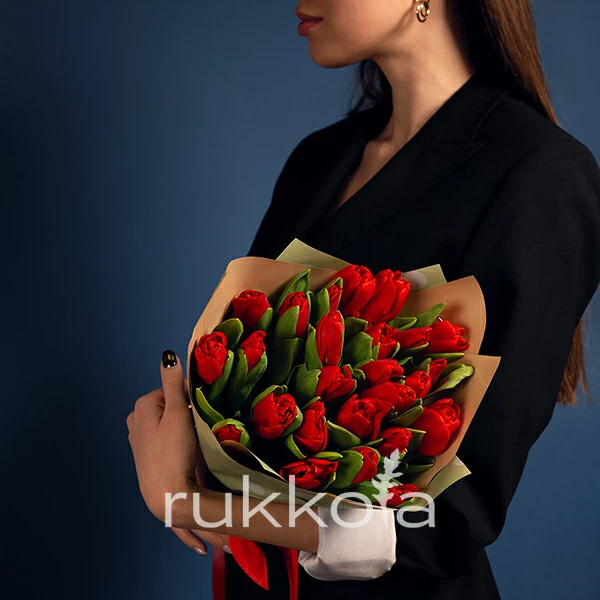 - 25 отборных красных тюльпанов;