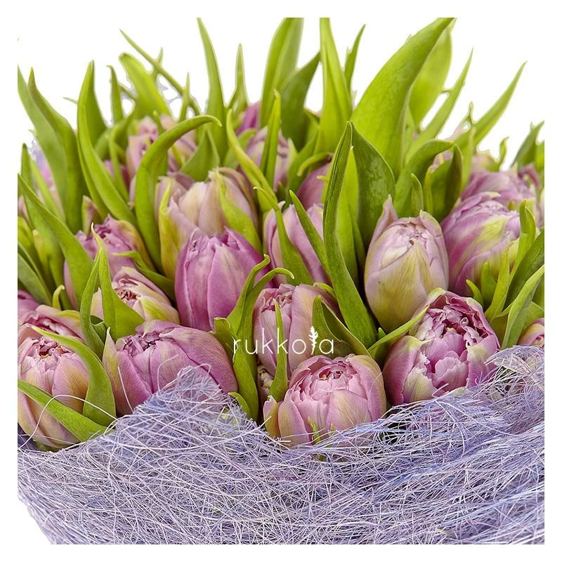 Букет лавандовых тюльпанов. 51 отборный тюльпан с доставкой. Флористы соберут букет из тюльпанов лавандового цвета с упаковкой или без, можем сделать в корзине. К цветам добавим конверт с запиской для получателя.