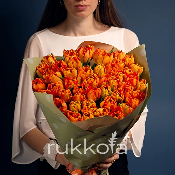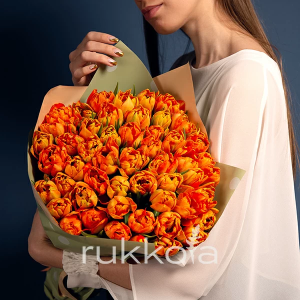 Фото букета из оранжевых тюльпанов вы можете видеть на этой странице. Свежие букеты от флористов "Руккола".