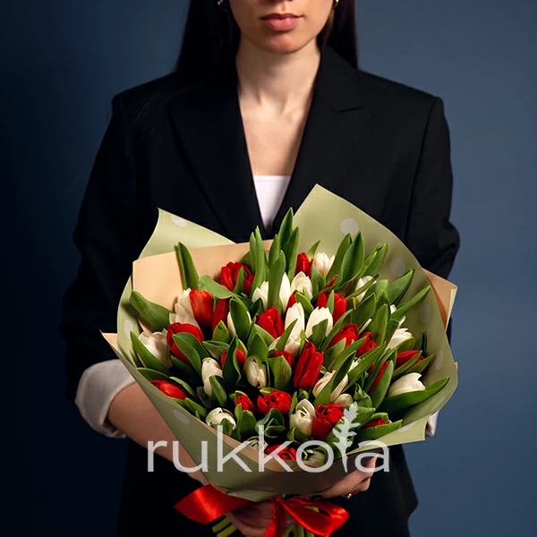 - 51 отборных белых и красных тюльпана;